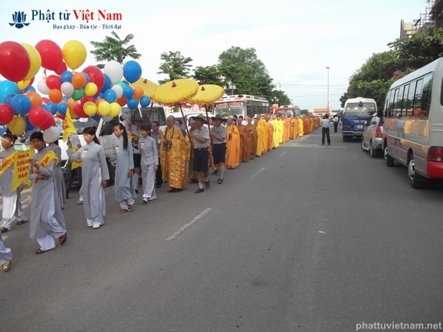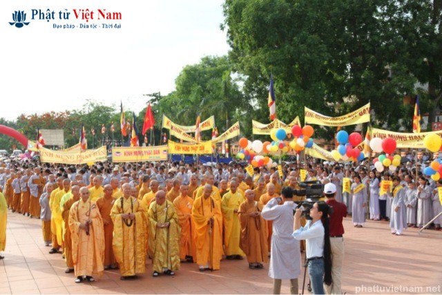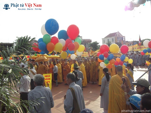 Phần cuối buổi lễ chư Tôn Hòa thượng Giáo phẩm cùng các đại biểu chính quyền tỉnh thả chim bồ câu và bóng bay cầu nguyện Tổ quốc hòa bình, chúng sanh an lạc.
