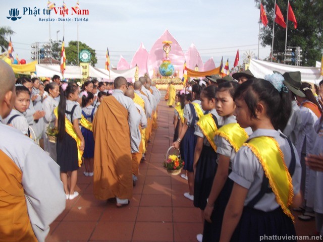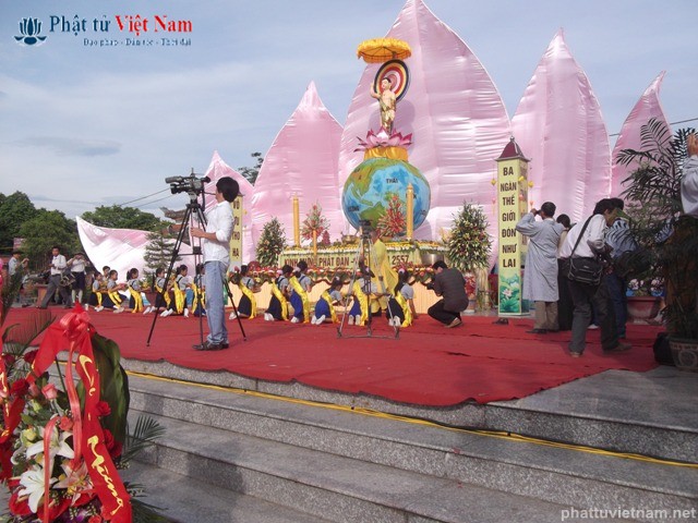 Sau khi đảnh lễ xưng tán Lâm Tỳ Ni viên ba lần, toàn thể Phật tử đồng quỳ tụng bài khánh đản.