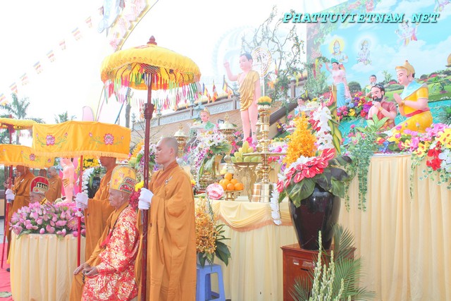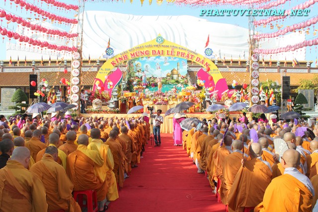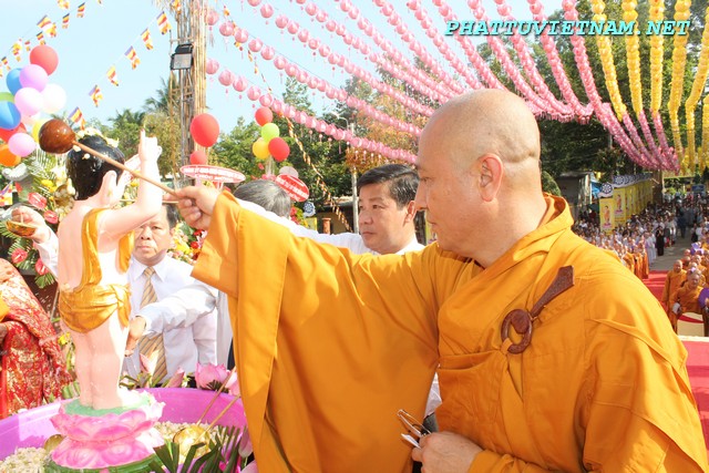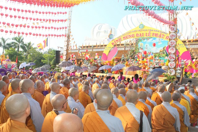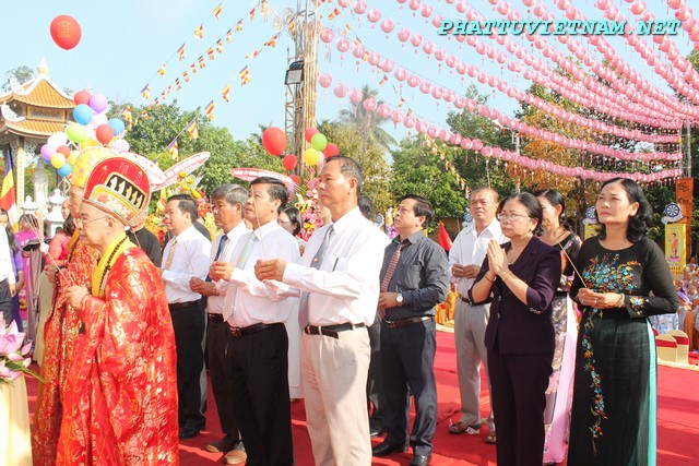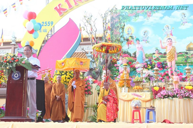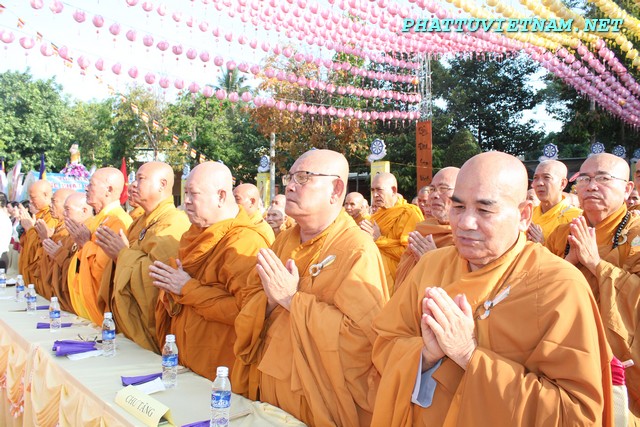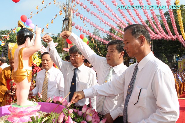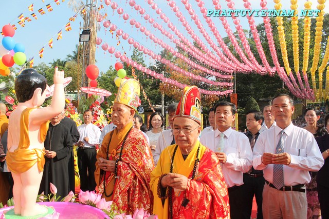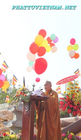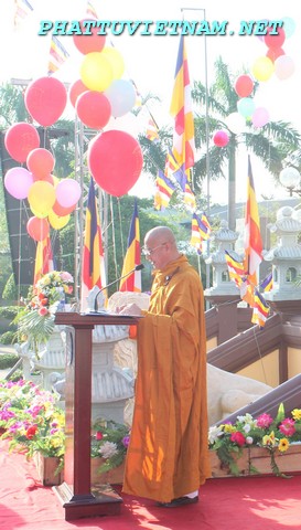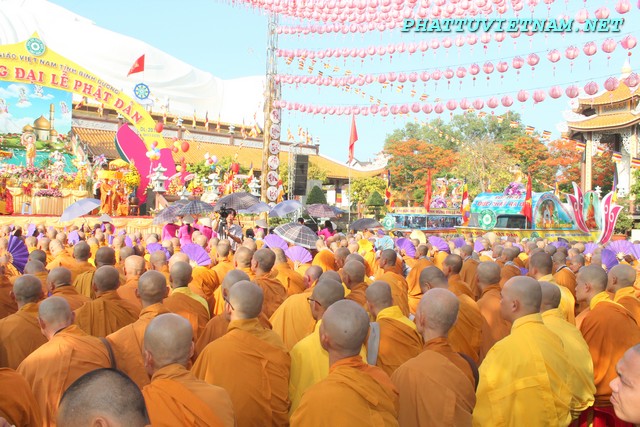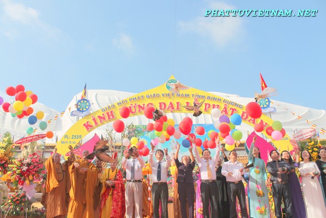 Sau lời phát biểu của chủ tịch UBMTTQ, chư tôn đức cùng qúy quan khách huân tập tại lễ đài cùng niệm hương, tắm Phật, thả chim bồ câu và bóng bay nguyện cầu thế giới an bình hạnh phúc.