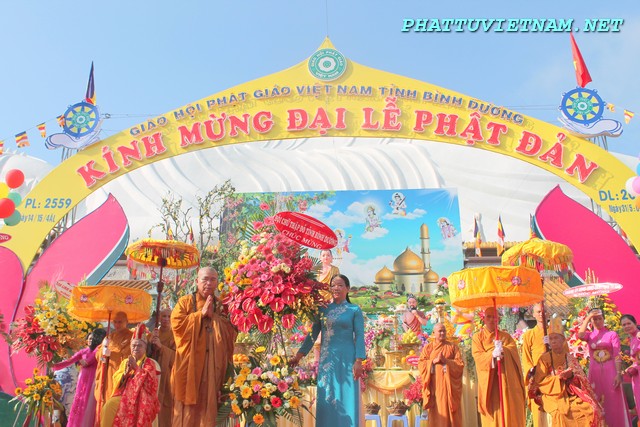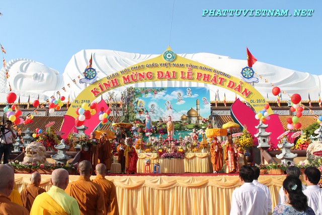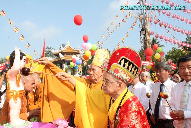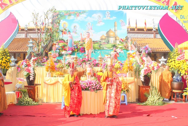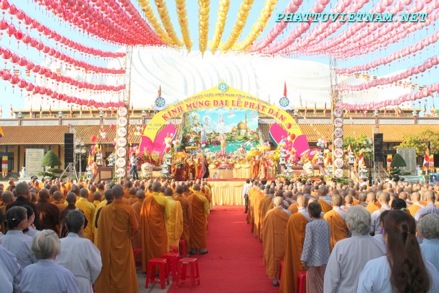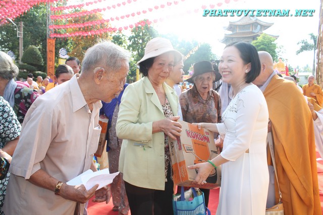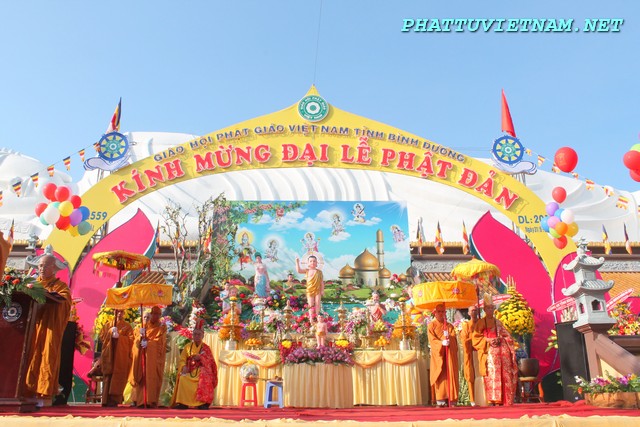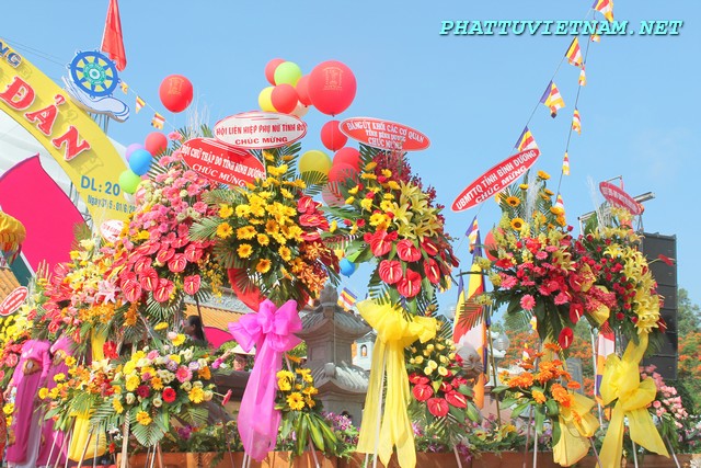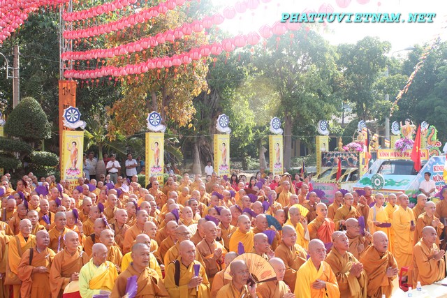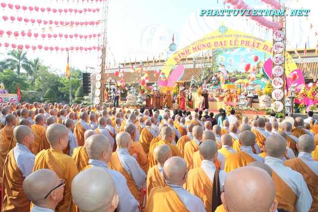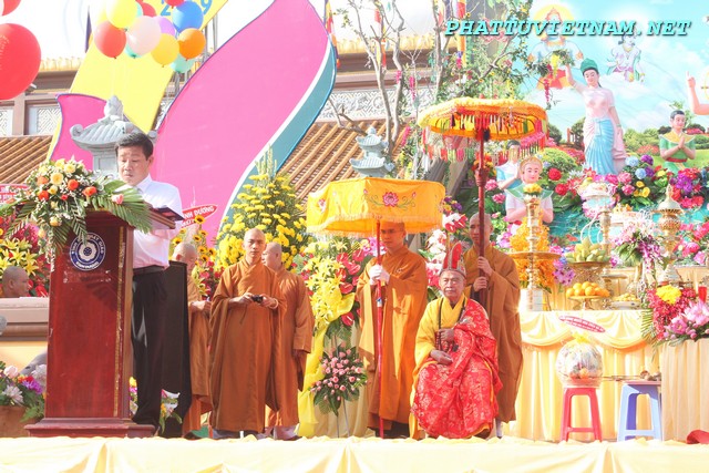 Sau lời phát biểu của chủ tịch UBMTTQ, chư tôn đức cùng qúy quan khách huân tập tại lễ đài cùng niệm hương, tắm Phật, thả chim bồ câu và bóng bay nguyện cầu thế giới an bình hạnh phúc.