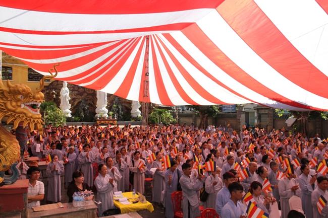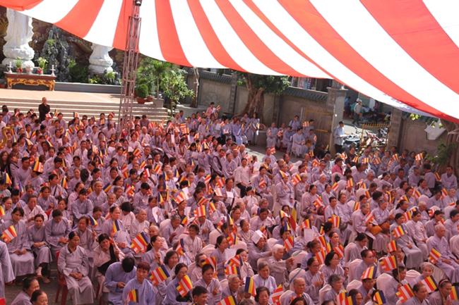 Sau nghi thức chào quốc kỳ, đạo kỳ và phút nhập từ bi quán, toàn thể hội chúng được nghe thông điệp của Trưởng lão HT.Thích Phổ Tuệ, Pháp chủ HĐCM do HT.Thích Thông Đạt tuyên đọc