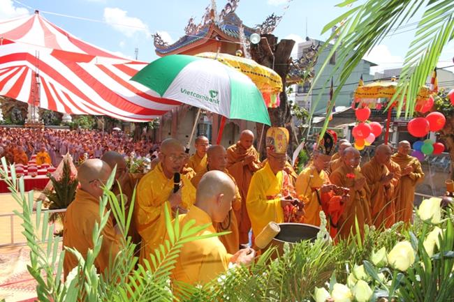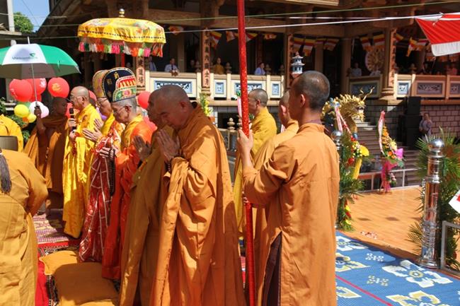 Sau lễ hành chính, HT. Thích Thanh Liên, Trưởng ban nghi lễ cùng toàn thể hội chúng niệm hương cử hành nghi thức cúng dường khánh đản đức Bổn Sư Thích Ca Mâu Ni.