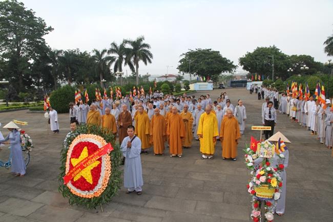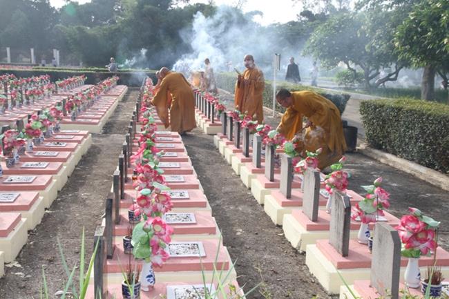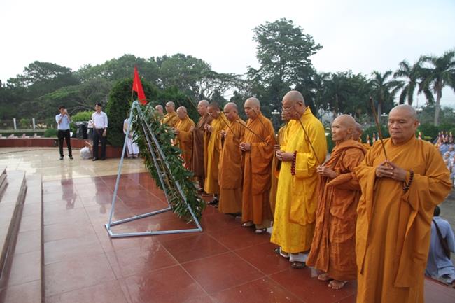 Sáng sớm cùng ngày Tăng, Ni Phật tử Gia Lai đã tổ chức viếng thăm, dâng hương, dâng hoa tưởng niệm anh linh các anh hùng liệt sĩ tại nghĩa trang liệt sĩ Tỉnh.