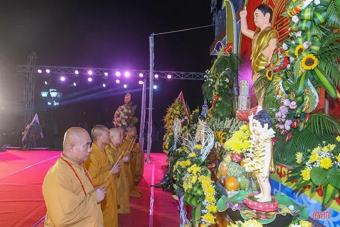 Tại buổi lễ, lãnh đạo tỉnh và lãnh đạo các ngành, địa phương đã tặng hoa, dâng hương mừng Đại lễ Phật đản và cử hành nghi lễ tắm Phật.
