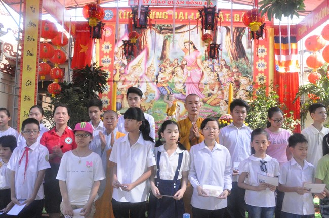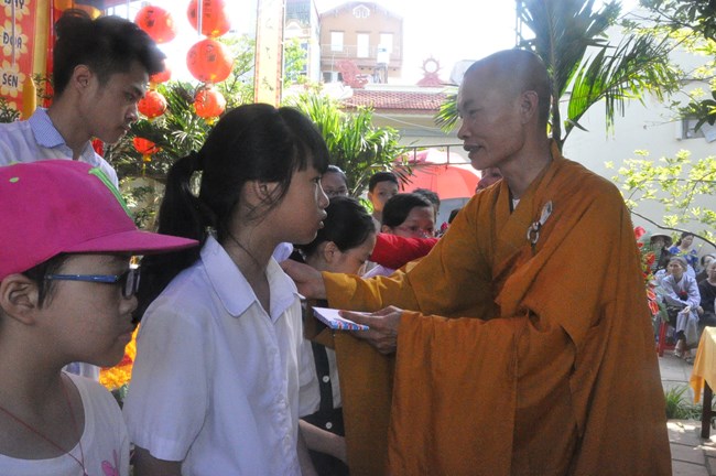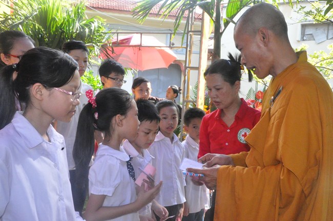 Cũng trong dịp này Đại đức Thích Đạo Phong và Ni Sư Thích Đàm Minh đã tặng quà động viên các cháu có hoàn cảnh khó khăn trong Quận.