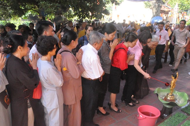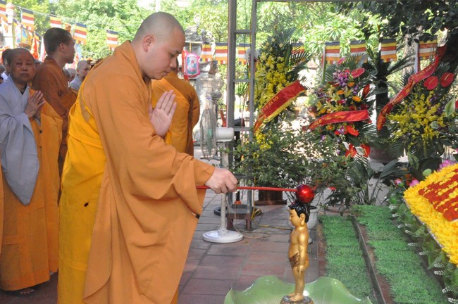 Cuối cùng là nghi lễ tắm Phật – nghi lễ trang nghiêm nhất của buổi lễ. Đông đảo Phật tử đạo tràng đã cùng tham gia vào nghi thức tắm Phật trong niềm hoan hỷ, an lạc của ngày Đức Từ Phụ đản sinh.