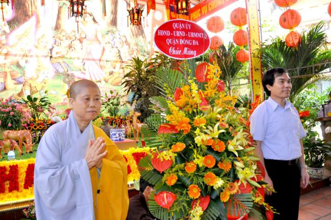 Đến chứng minh và tham dự có: Thượng tọa Thích Tiến Đạt – Ủy viên thường trực HĐTS, Phó trưởng Ban thường trực Ban pháp chế TW GHPGVN, Phó trưởng Ban kiêm Chánh thư ký BTS GHPGVN thành phố Hà Nội; Ni trưởng Thích Đàm Hán – Viện chủ Tổ đình chùa Bộc; Ni sư Thích Đàm Minh – Ủy viên BTS GHPGVN Thành phố Hà Nội, Trưởng BTS GHPGVN quận Đống Đa; Ni sư Thích Đàm Tuyết – Phó BTS GHPGVN quận Đống Đa; Đại đức Thích Đức Hạnh – Phó BTS GHPGVN quận Đống Đa cùng toàn thể chư tôn đức Tăng Ni, Phật tử trong Quận cùng về tham dự.