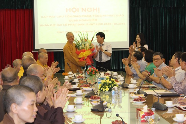 Sau đó, tại trụ sở UBND quận Hoàn Kiếm, lãnh đạo Quận đã tổ chức Hội nghị gặp mặt các vị chức sắc Phật giáo quận Hoàn Kiếm nhân kỷ niệm Đại lễ Phật đản PL2559 – DL2015.