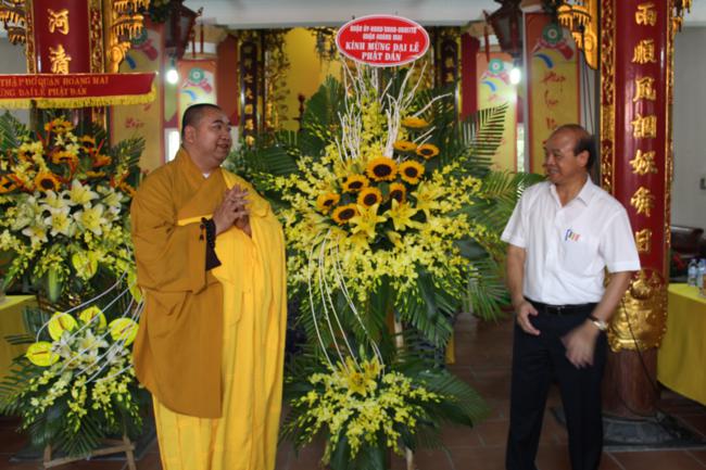 Phát biểu tại buổi lễ, Ông Nguyễn Anh Cường – Ủy viên thường vụ, chủ tịch UBMTTQ thay mặt các ban ngành chức năng đã chúc mừng mùa Phật Đản tới toàn thể chư Tăng Ni. Ông mong rằng tầng lớp Tăng Ni Phật tử quận Hoàng Mai tự giác và quyết tâm thực hiện lời Phật dạy “ Lợi lạc quần sinh, vô ngã vị tha”, thực hiện tốt các phong trào thi đua yêu nước, góp phần xây dựng quận Hoàng Mai ngày càng ổn định và phát triển bền vững.