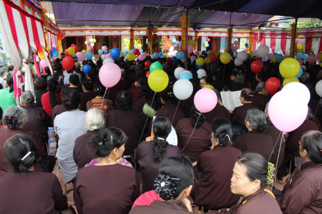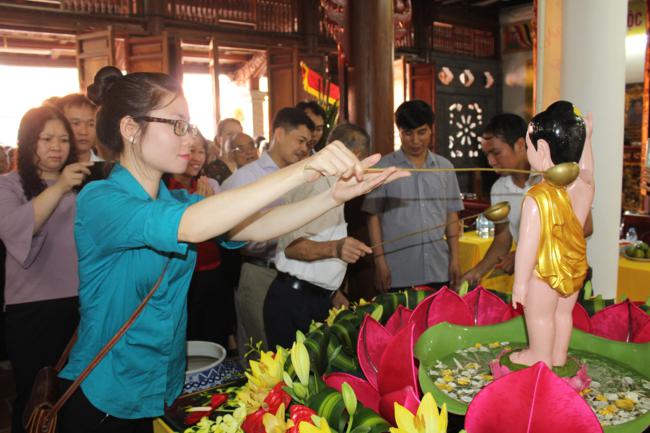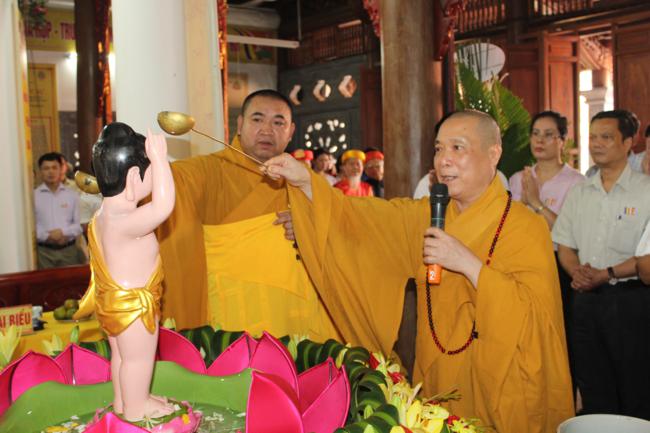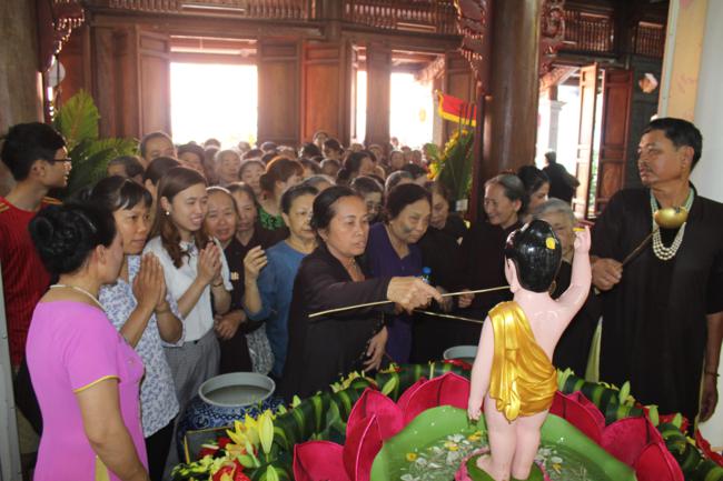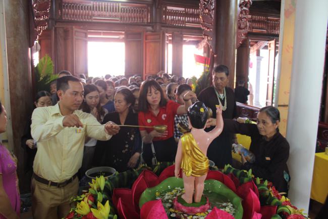 Trong giờ phút trang nghiêm và long trọng, chư Tôn đức và toàn thể hội chúng cử hành nghi lễ tụng kinh Phật đản truyền thống và làm lễ tắm Phật trong niềm hoan hỷ vô biên mừng ngày đản sinh của Đức Từ Phụ.
