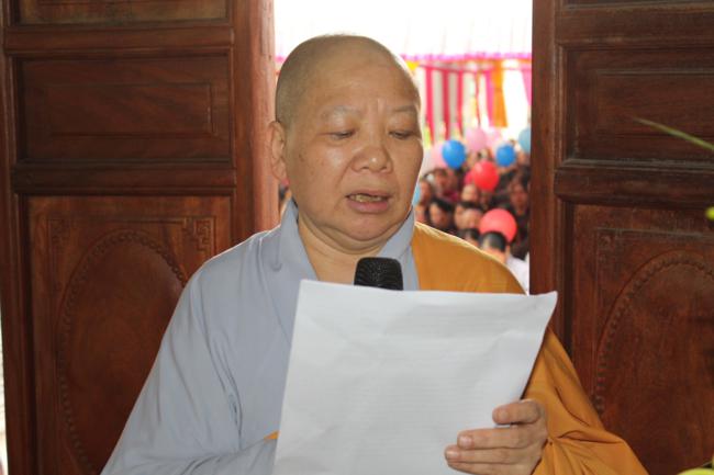 Tiếp theo, Ni sư Thích Đàm Hiếu – phó BTS GHPGVN quận Hoàng Mai đọc ý nghĩa Phật đản PL2561 – DL2017 của Hoà thượng Thích Bảo Nghiêm – Phó Chủ tịch HĐTS kiêm Trưởng ban Hoằng Pháp TW GHPGVN.
