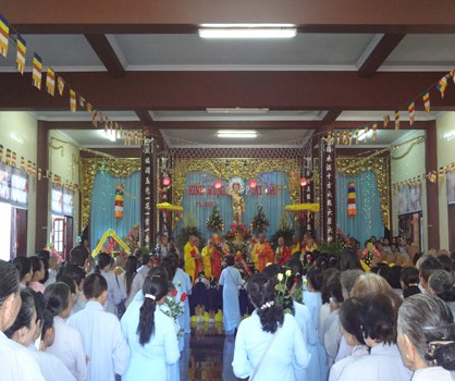 Chư tôn đức giáo phẩm cùng lãnh đạo chính quyền địa phương đã thực hiện nghi thức tâm linh, đối trước lễ đài niêm hương cúng dường, các Phật tử dâng hoa thành kính cúng dường, thả bong bóng, cử nhạc liên khúc ca mừng khánh đản đón mừng ngày Đức Từ phụ Thích Ca Mâu Ni ra đời.