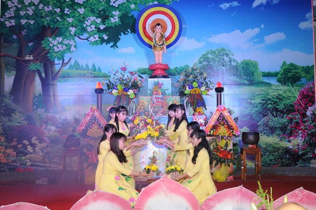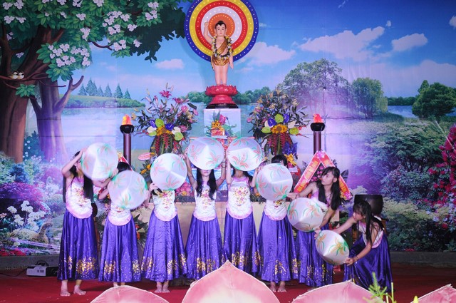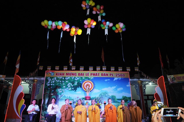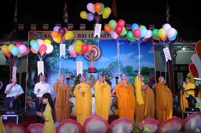 Sau phần nghi lễ Phật đản theo nghi thức truyền thống Phật giáo, chư tôn đức cùng đại diện chính quyền đã thả những chùm bong bóng đồng cầu nguyện cho thế giới hòa bình chúng sinh an lạc.