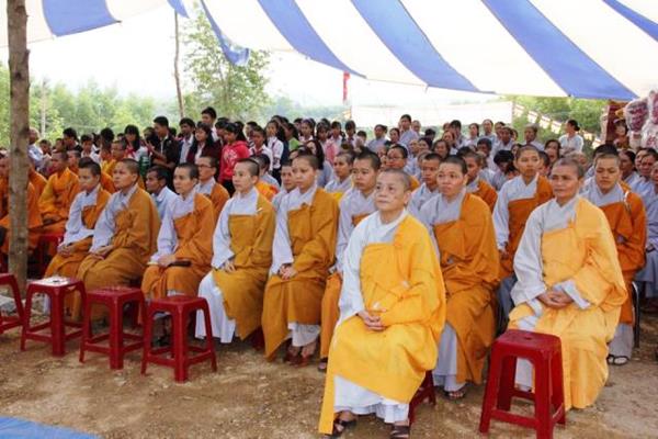 Từ 6 giờ sáng Chư tôn Hoà thượng, chư Thượng toạ, Đại đức Tăng, Ni Ban giám hiệu, Tăng Ni sinh trường TCPH Khánh Hòa và đông đảo Phật tử, học sinh các trường ở địa phương đã vân tập về Chùa Phật giáo Khánh Vĩnh nơi lễ đài chính trang nghiêm hành lễ.