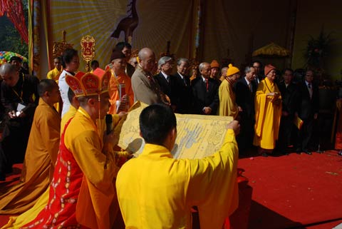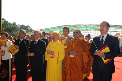 Chứng minh và tham dự buổi lễ có chư Tôn đức giáo phẩm Hội đồng Chứng minh, Hội đồng Trị sự GHPGVN, chư Tôn đức Tăng Ni các tỉnh, thành hội Phật giáo cả nước. Về dự Đại lễ có gần 10 vạn Tăng Ni Phật tử thập phương về dự.
