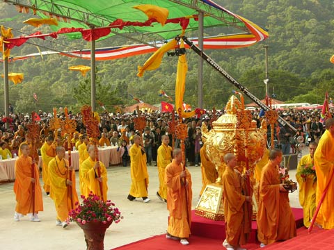 Cuối buổi lễ chư tôn đức Giáo phẩm GHPGVN cùng các vị lãnh đạo Đảng và nhà nước làm lễ dâng hương, thả bóng bay, chim bồ câu, cầu nguyện hoà bình quốc thái dân an.
