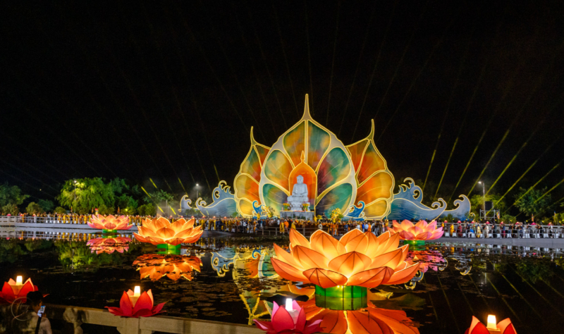 Đêm hội diễn ra trong không khí trang nghiêm, linh thiêng với sự tham gia của đông đảo công chúng. Buổi lễ mang ý nghĩa đặc biệt, là dịp để mọi người con Phật trên khắp năm châu cùng cầu nguyện cho hòa bình, an lạc đến với muôn loài.