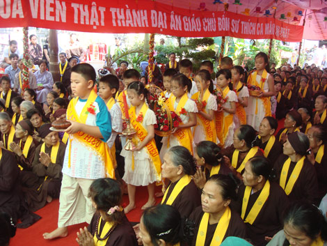 Các em thiếu nhi dâng hoa cúng dàng chư tôn đức