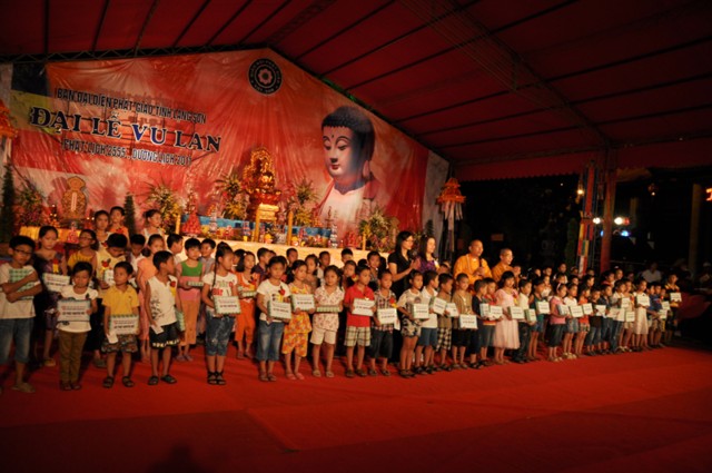 Ngay sau buổi lễ. Ban Tổ chức đã trao tặng 225 phần quà khuyến học cho các em Thanh thiếu niên Phật tử đã đạt thành tích học tập xuất sắc trong niên học 2010 – 2011.