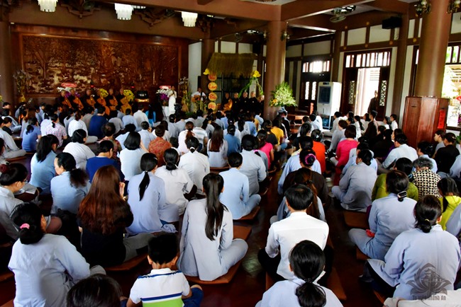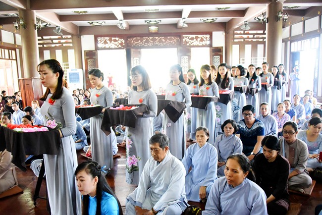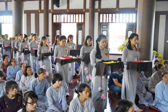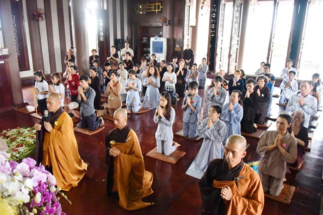 14h, Nghi thức quy y Tam Bảo được cử hành trang trọng cho gần 80 thiện nam, tín nữ phát nguyện quay về nương tựa Ba Ngôi Báu. Nhân ngày Vu Lan, Tu viện cũng đã tổ chức phát trên 200 phần quà cho bà con nghèo trên địa phương hưởng lộc ngày Báo Hiếu
