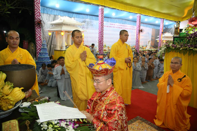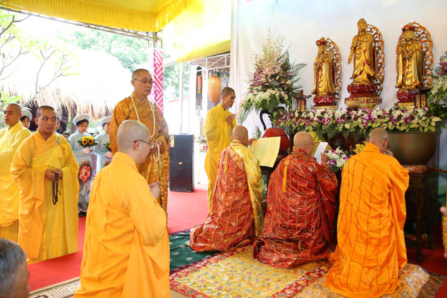 ĐĐ. Thích Nguyên An – Ủy viên BTS GHPGVN Tp Đà Nẵng, Tri sự chùa Kim Sơn, Trưởng BTC Đại lễ cùng Tăng chúng, Ban hộ tự đã thành tâm cung thỉnh ĐĐ. Thích Thông Đạo – Ủy viên HĐTS GHPGVN, Phó ban kiêm Chánh thư ký BTS GHPGVN Tp Đà Nẵng; ĐĐ. Thích Nghiêm Thiện – Phó trưởng ban nghi lễ GHPGVN Tp Đà Nẵng; ĐĐ. Thích Đồng Nghĩa – Ủy viên BTS GHPGVN Tp Đà Nẵng đương vi Sám chủ trai đàn; ĐĐ. Thích Đạo Tâm – Trưởng ban kinh tế tài chính GHPGVN quận Thanh Khê đương vi Công văn trai đàn cùng Chư Đại đức ban kinh sư.