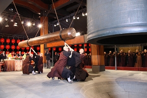Pháp hội cầu phước nghe chuông đêm giao thừa tại Pháp Cổ Sơn, bắt đầu từ 22 giờ đóng tiếng chuông thứ nhất, khai thắng hội nghe pháp trang nghiêm thù thắng tại hội trường, tuy cơn mưa kéo dài, nhưng dân chúng tham gia pháp hội từ đại điện đến lầu chuông Pháp Hoa vẫn liên tục, và trình tự theo sự hướng dẫn của các Pháp sư nhiễu quanh Đại hồng chung cầu phước. Đến 0 giờ tiếng chuông thứ 108 đã viên mãn, một năm mới đã mở ra tia hy vọng mới cho mọi người.
