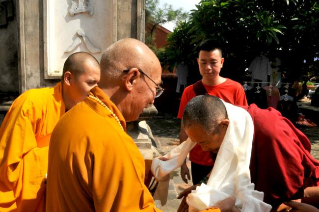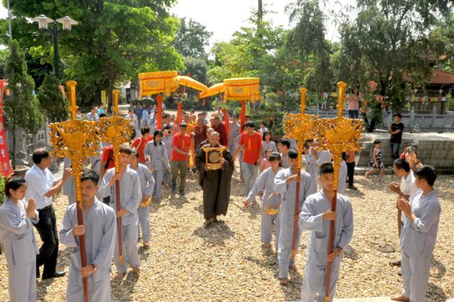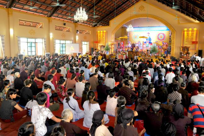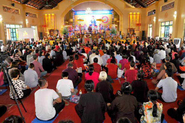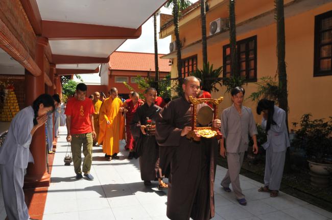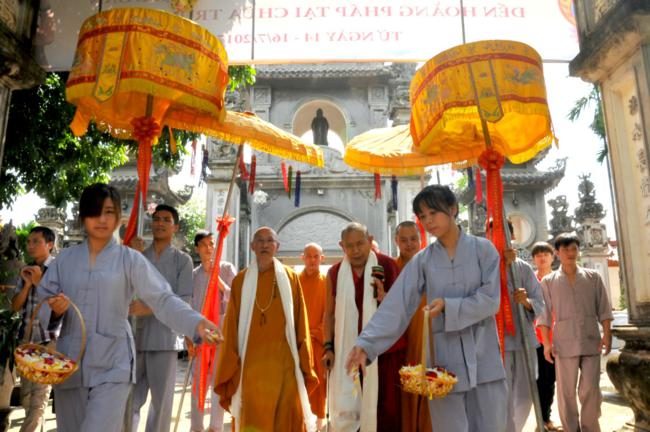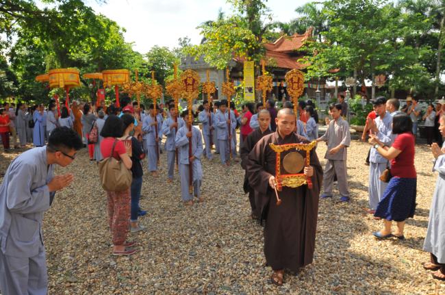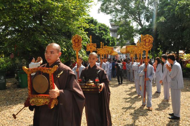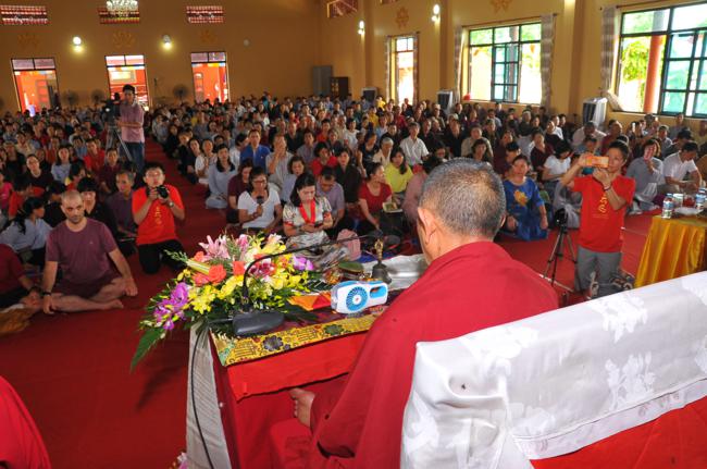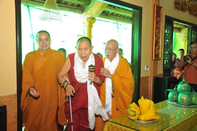 Đúng 9h30, trong không gian tràn ngập sự hân hoan và niềm phấn khởi, toàn thể quý Phật tử đã xếp thành hai hàng danh dự từ ngoài cổng tam quan vào đến nhà khách để cung nghinh Đại sư quang lâm. Sau khi có lời thăm hỏi Thượng tọa trụ trì cùng chư Tăng bản tự, vào lúc 10h00, Đại sư đã có thời pháp thoại đến toàn thể hội chúng.