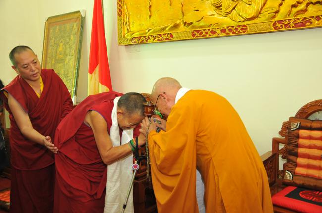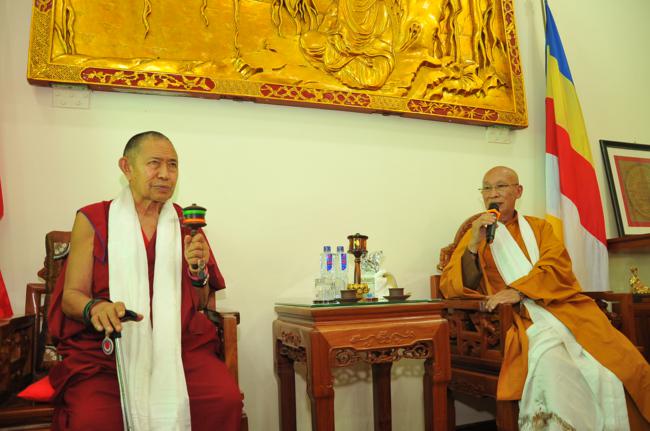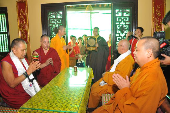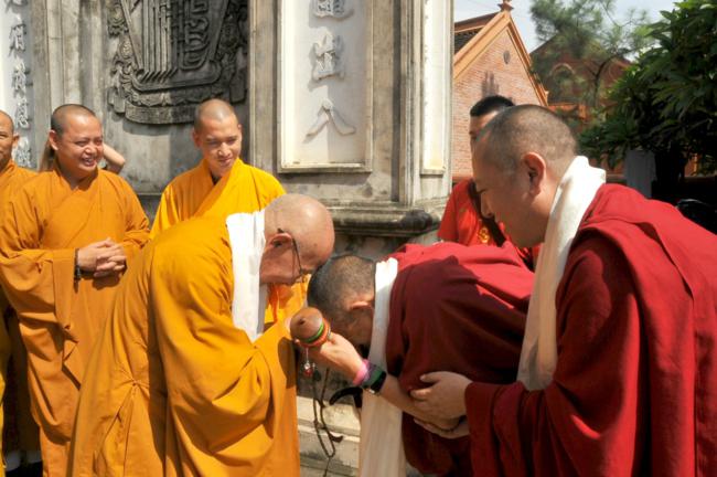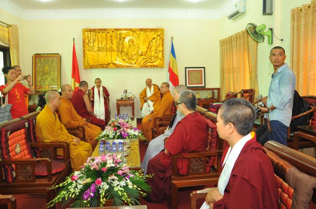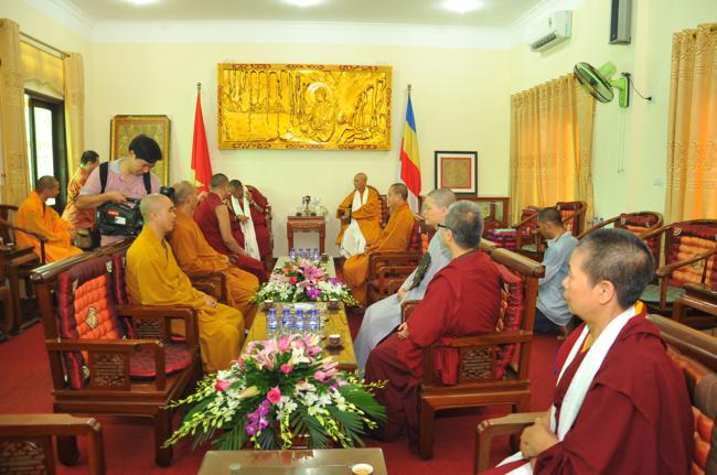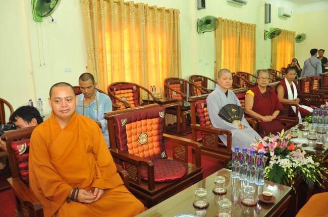 Đón tiếp quý đoàn có: Thượng tọa Thích Chiếu Tạng – Ủy viên HĐTS, Phó Ban hoằng pháp TW, Phó BTS kiêm Trưởng Ban Phật giáo quốc tế GHPGVN thành phố Hà Nội cùng chư tôn đức Tăng bản tự.