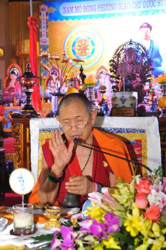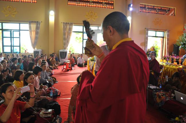 Sau đó, Đức Garchen Rinpoche đã quang lâm và thực hiện nghi thức lễ quán đỉnh đại thủ ấn 5 nhánh – con đường đạt tới trí tuệ Ba La Mật.
