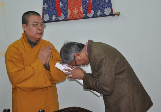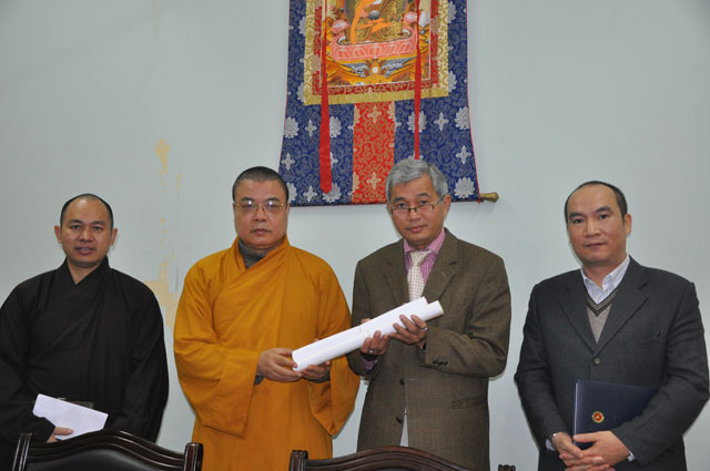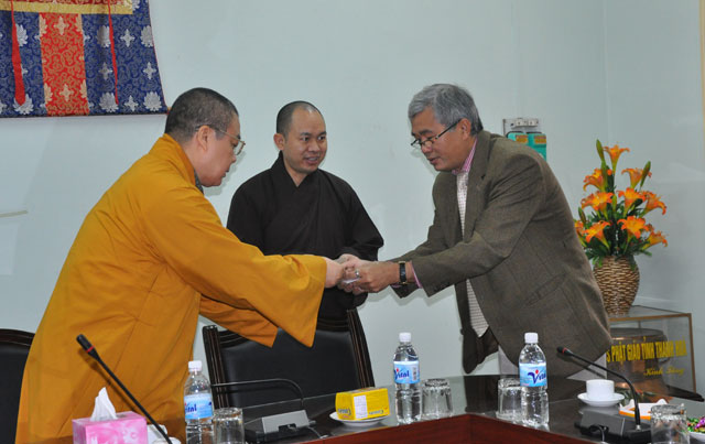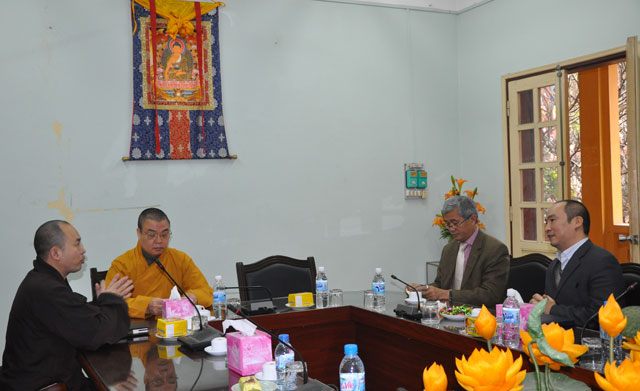 Tiếp đoàn có HT Thích Thanh Nhiễu – Phó chủ tịch TT HĐTS GHPGVN; ĐĐ Thích Đức Thiện – Ủy viên Thư ký HĐTS GHPGVN – Phó văn phòng I TW