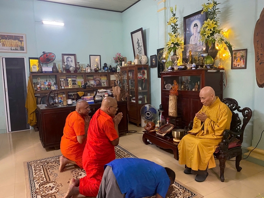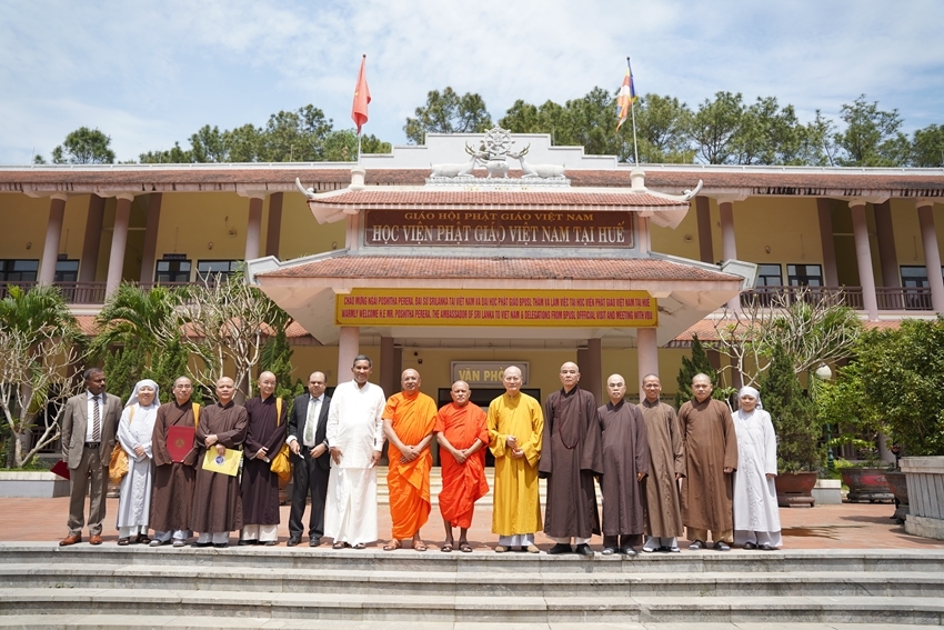 Trước chuyến thăm và ký kết văn bản ghi nhớ hợp tác, đoàn Đại học Phật giáo và Pali Sri Lanka do Hòa thượng, GS- Viện trưởng Neluwe Sumanawansa Thero dẫn đầu đã đến chùa Bảo Lâm (P.Thủy Xuân, Q. Thuận Hóa) để vấn an và đảnh lễ Trưởng lão Hòa thượng Thích Giác Quang, Phó Pháp chủ GHPGVN.
