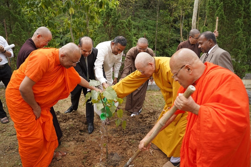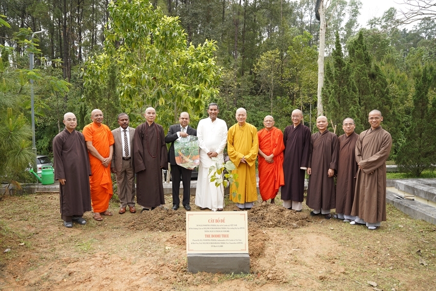 Đại sứ Poshitha Perera tặng và trồng cây bồ đề lưu niệm được nhân giống từ cây bồ đề Quốc bảo của Sri Lanka