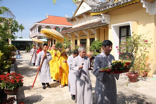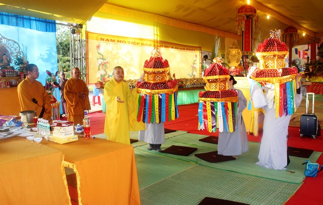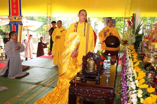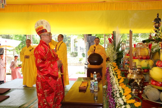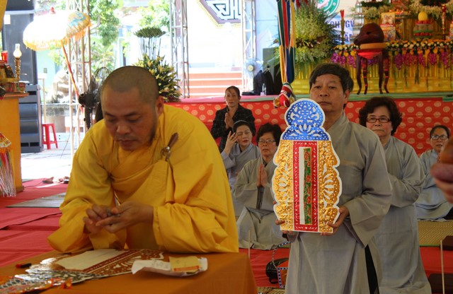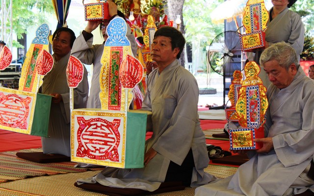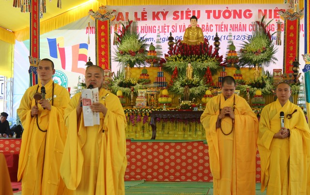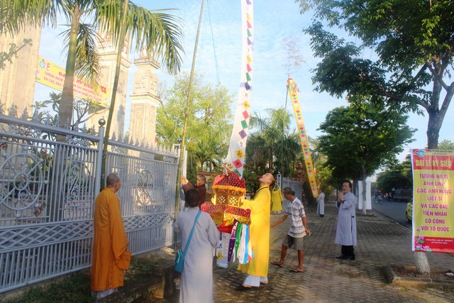 Buổi lễ diễn ra trang nghiêm với các nghi thức, nghinh phan sơn thủy, thượng phan, bạch Phật khai kinh, đề phan vị, thỉnh chư anh linh Anh hùng liệt sĩ.