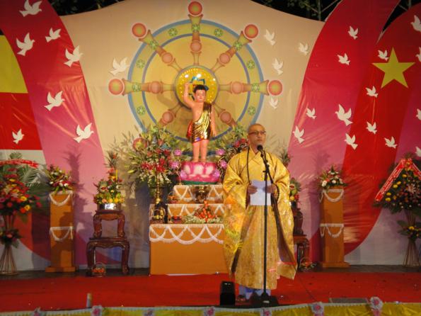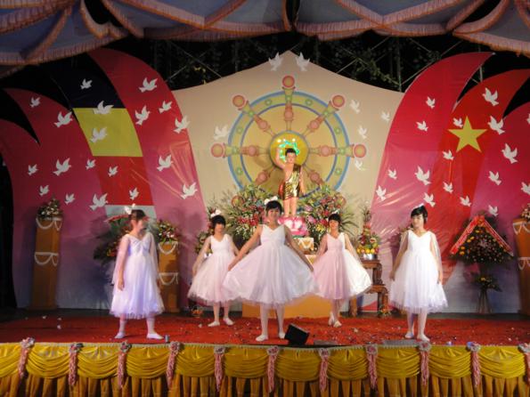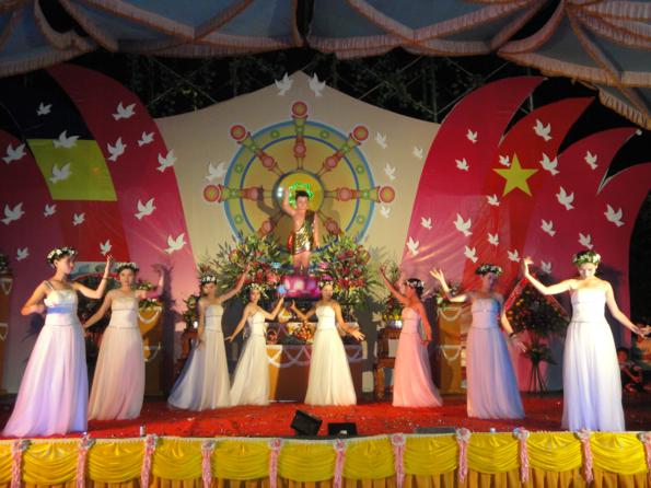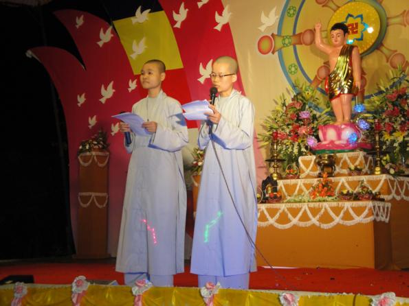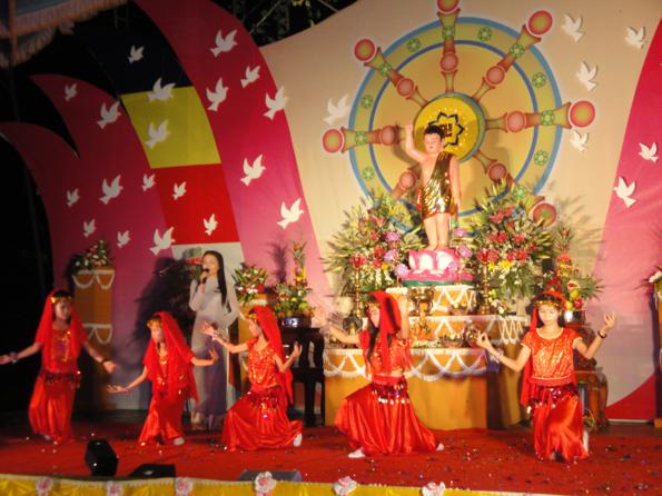 Tối cùng ngày chùa tiếp tục tổ chức đêm văn nghệ mừng Đản sinh với chủ đề: Ca Ngợi Đức Thế Tôn.