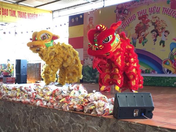 Ngoài những phần quà Trung Thu là bánh kẹo, các Phật tử còn được thưởng thức chương trình múa Lân đặc sắc do đội Lân của GĐPT chùa Hoa Nghiêm cúng dường và một chương trình văn nghệ ngắn gọn nhưng sôi động mang đậm dấu ấn của mùa Trung Thu