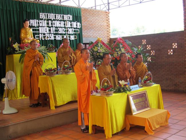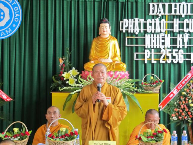 Chủ tọa đoàn có ĐĐ. Thích Minh Đăng . Chánh Đại Diện Huyện Hội Phật Giáo Cưm’gar. ĐĐ. Thích Quảng Đàm- Chánh Đại Diện Thị Hội Phật Giáo Thị Xã Buôn Hồ.ĐĐ. Thích Giác Ngộ – Chánh Đại Diện Huyện Hội Phật Giáo Huyện Krongpak. Chư Tôn Đức Tăng, Ni các chùa, viện, tịnh thất, niệm Phật đường và hơn 300 đại biểu là chúng trưởng, huynh trưởng, Phật tử nòng cốt người Kinh, người đồng bào của các đơn vị Phật giáo trong huyện về tham dự.