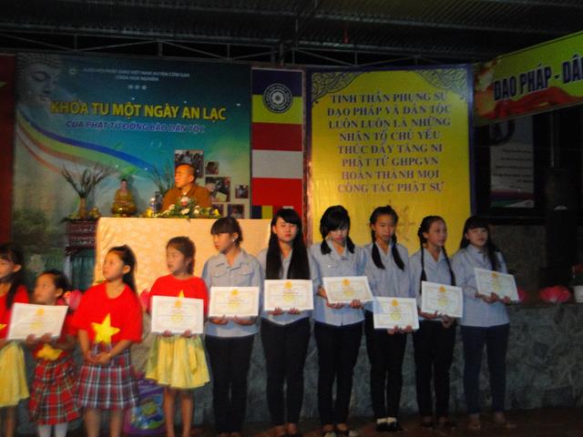 Trong buổi tổng kết có 21 đoàn sinh được nhận khen thưởng, tán dương công đức cho 10 anh, chị có thành tích hoạt động tích cực trong năm vừa qua, buổi lễ có phần biểu diễn văn nghệ hát mừng Phật Thích Ca Mâu Ni Thành Đạo do các anh chị em trong gia đình phật tử chùa Hoa Nghiêm thể hiện,
