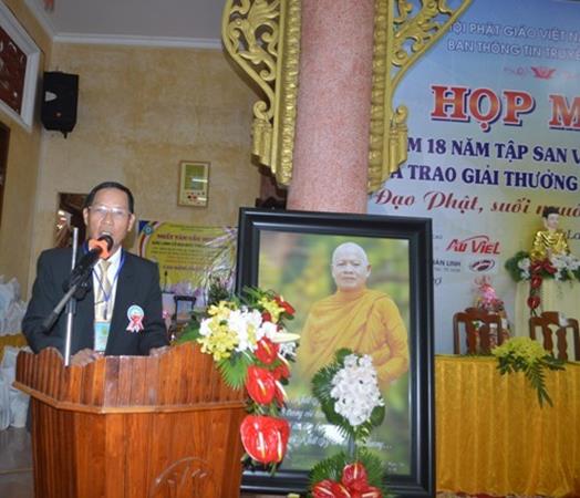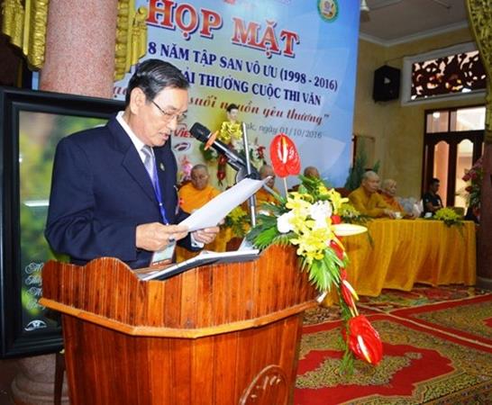 Cư sĩ Thiện Thông -Tạ Nam Trân-Trưởng Ban Văn Hóa trước đây, Trưởng Ban Thông tin truyền thông hiện nay- Trưởng Ban Biên tập Tập san Vô Ưu báo cáo thành quả hoạt động của Tập san trong 18 năm qua 1998-2016. Số báo đầu tiên ra mắt độc giả trong dịp Đại lễ Vu Lan PL.2.542 (1998) với số lượng 500 cuốn, độ dày 40 trang, đến nay Vô Ưu đã phát hành 60 số với số lượng 4.500 cuốn/1 số, độ dày 80 trang Trong 18 năm qua Vô Ưu đã tổ chức một trại sáng tác năm 2006, thi viết văn xuôi năm 2008, thi tho tứ tuyệt năm 2013 và năm nay thi viết truyện ngắn, tùy bút với chủ đề “Đạo Phật, suối nguồn yêu thương”