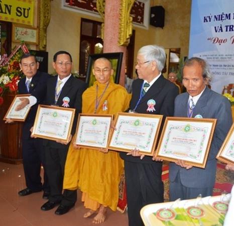 HT.Thích Giác Chí công bố quyết định khen thưởng của HĐTS.GHPGVN Bằng Tuyên dương Công đức cho các cá nhân thâm niên trong Ban Biên tập: cư sĩ Thiện Thông – Tạ Nam Trân, Viên Hạnh – Phan Bá Sỹ, Tiến Thảo – Ngô Văn Hải và Dạ Lữ – Kiều Trần Xuân Thái. TT. Thích Giác Tiến-Phó Trưởng Ban Trị sự kiêm Chánh Thư ký GHPGVN tỉnh Daklak công bố quyết định Tán dương công đức và tặng quà lưu niệm của BTS.GHPGVN tỉnh Daklak cho các tập thể và cá nhân đã có công đóng góp cho sự phát triển Tập san Vô Ưu.