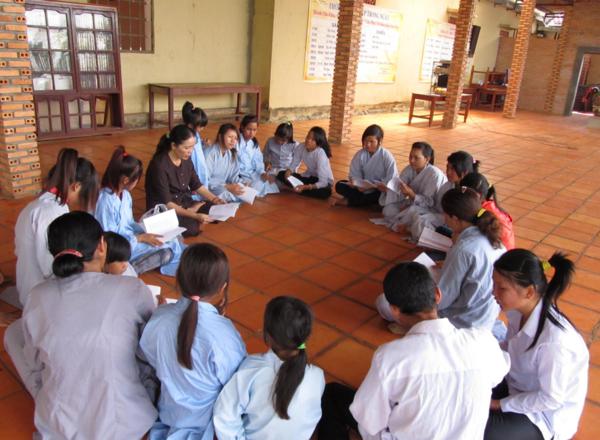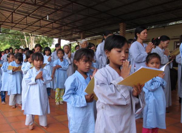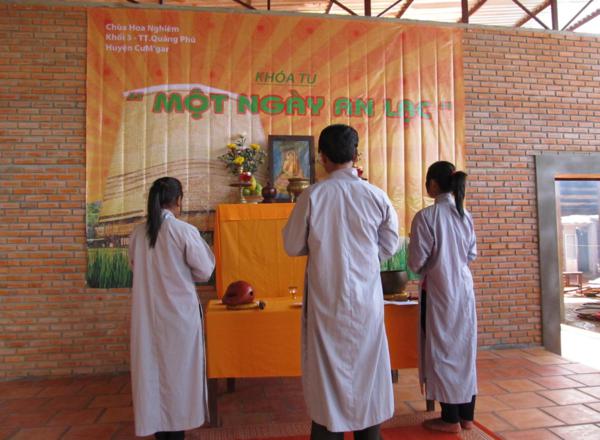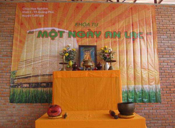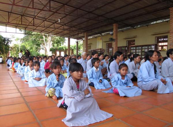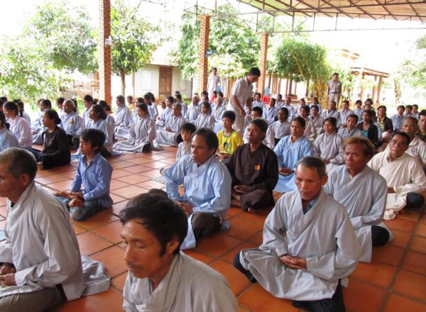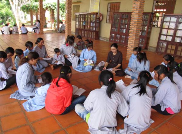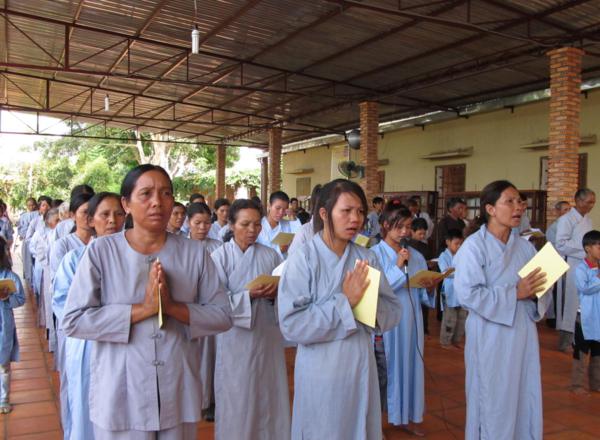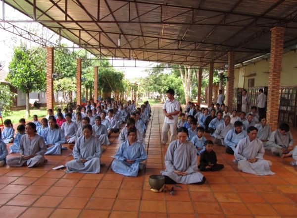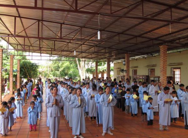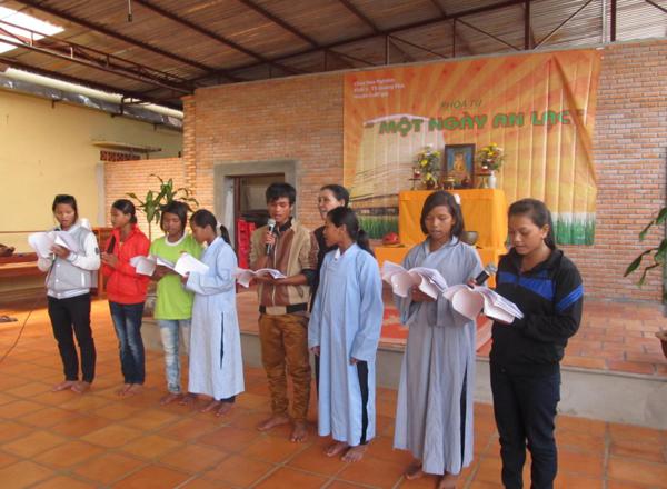 Buổi chiều là phần kiểm tra về việc nhớ và thực hiện Ngũ Giới trong đời sống hằng ngày của bà con . Phần chia sẻ Phật pháp bằng tiếng Êđê và sinh hoạt tập thể là phần mà bà con thích thú nhất . Tiếng cười vang trong buổi chiều làm dịu đi cái nóng bức của Tây Nguyên.
