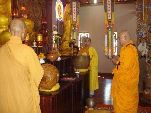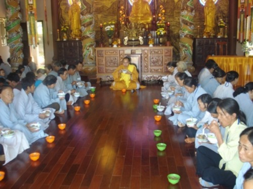Buổi trưa. Thầy Trụ Trì không thọ trai cùng Chư tăng mà cùng thọ trai với Phật tử tham gia khoá tu. Thầy đích thân hướng dẫn các nghi thức của khoá tu, nhất là trong lúc ăn phải hết sức nhẹ nhàng, không gây tiếng động dù đó là tiếng của muổng đũa .