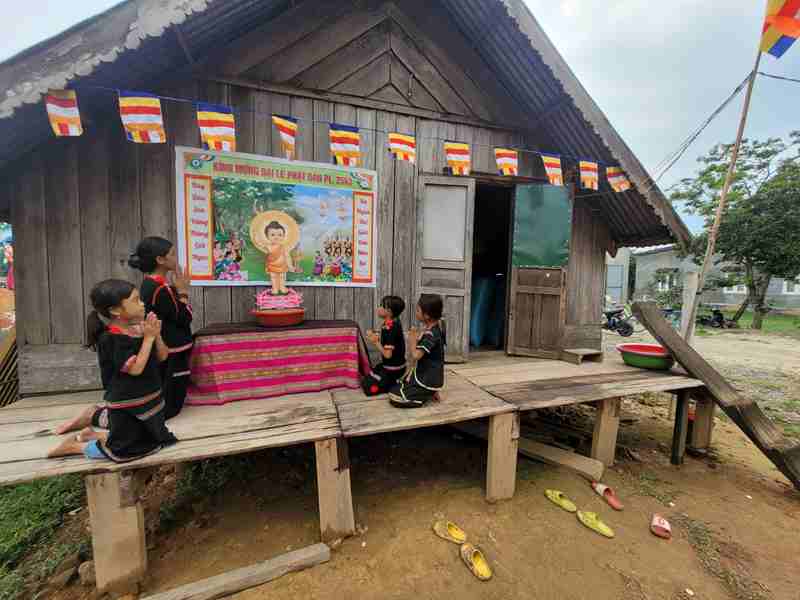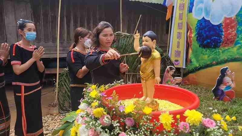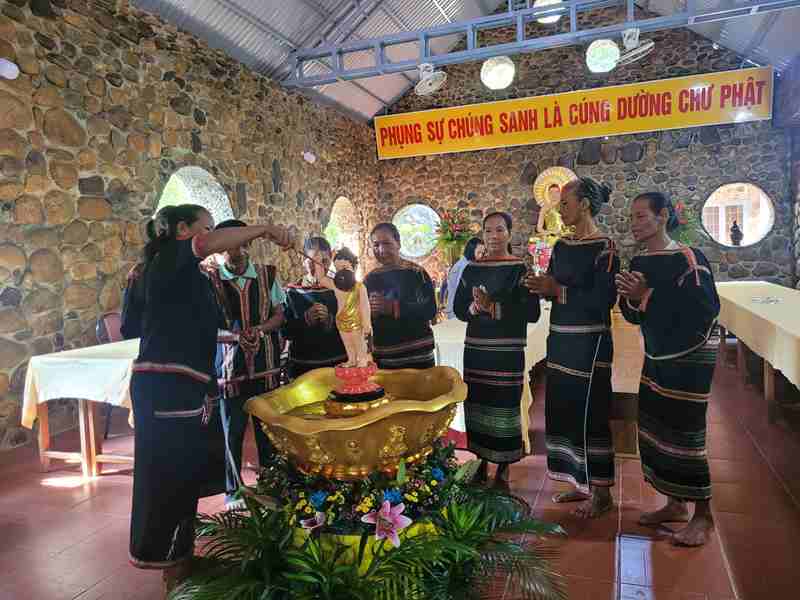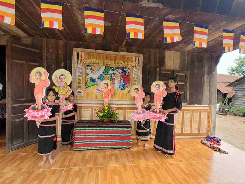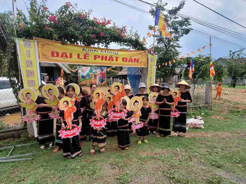 Lễ Phật Đản cho bà con đồng bào dân tộc dưới sự hướng dẫn của ĐĐ. Thích Nhuận Độ – Trụ trì Chùa Quảng Trạch, tổ chức hướng dẫn thiết lập vườn Lâm Tì Ni chào mừng tuần lễ Phật Đản, thăm hỏi bà con con Phật tử Cao niên, phát quà từ thiện, thuyết giảng ý nghĩa Phật Đản, Ẩm Thực Chay thiết đãi cả buôn Làng.