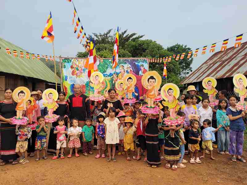 Chư tôn đức tặng hình tượng Đản Sinh cho 12 điểm sinh hoạt Phật giáo trong buôn làng
