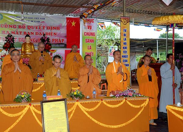 Về phía chính quyền, có bà H Kim Hoa Byă – trưởng ban dân vận tỉnh ĐắkLắk, ông Nguyễn Tấn Chức – trưởng ban Tôn Giáo tỉnh ĐắkLắk phát biểu chúc mừng, đại diện lãnh đạo chính quyền, ban ngành đoàn thể của huyện CưM’gar, xã EaH’Đing, Buôn Sang cũng về dự đông đủ. Gần 700 phật tử gần xa đã về dự lễ và chia vui cùng phật tử Hưng Pháp.