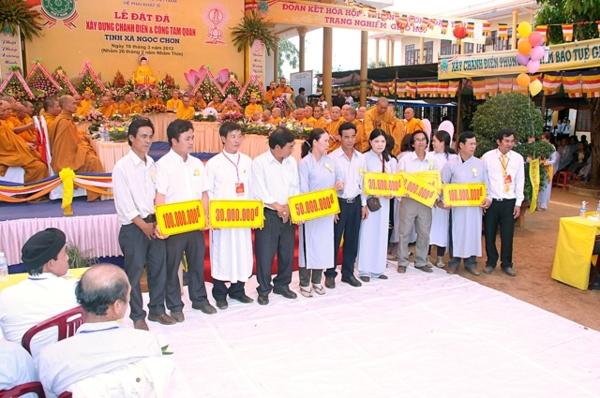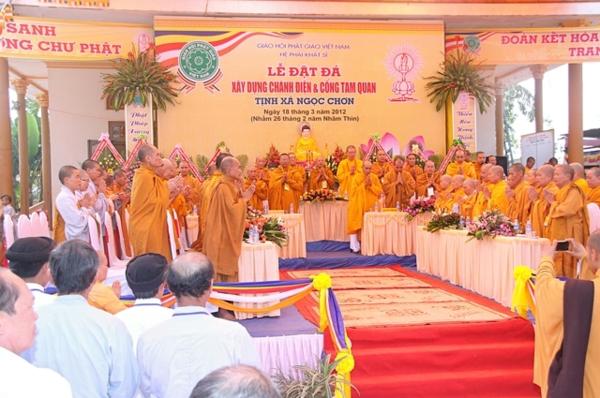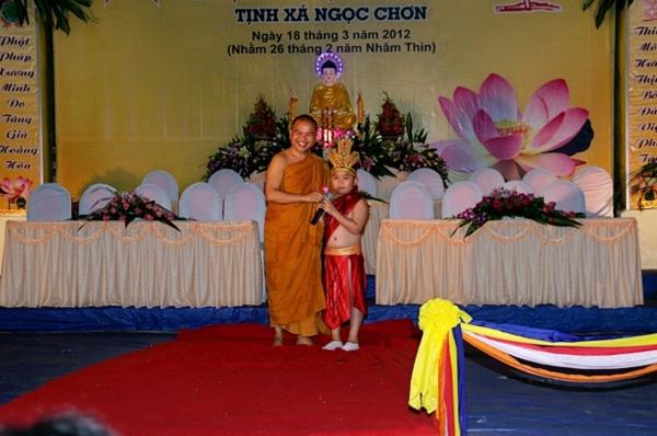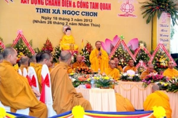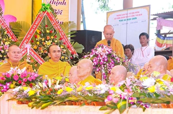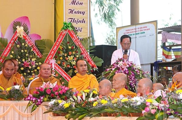T.T:Thích-Châu-Quang ban lời huấn từ, tán thán công đức của Chư ni cùng phật tử đạo tràng T.X Ngọc –Chơn.Ngài tha thiết mong Sư cô trụ trì hãy nổ lực giáo hóa bà con phật tử đi đúng tinh thần Đạo pháp-Dân Tộc-chủ nghĩa xã hội.Không chỉ là xây dựng ngôi chánh điện mà phải xây dựng tinh thần nổ lực tu học và đồng hành cùng chính quyền địa phương xây dựng tỉnh nhà ngày càng giàu đẹp.