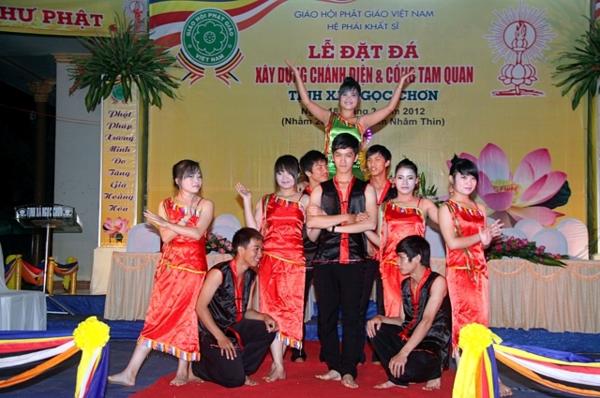 Trước buổi lễ diễn ra đêm 17-03-2012(nhằm ngày 25-02-nhâm Thìn) các em G.Đ.P.T đã có nhưng tiết mục văn nghệ mang lời ca điệu múa chúc mừng lễ đặt đá,Đ.Đ:Giác –Hoàng có thời chia sẻ pháp với chủ đề (Phước vật-Phước Đức-Phước trí)Kế tiếp là lễ Hoa đăng cầu quốc thái dân an.
