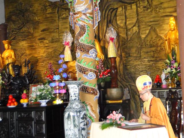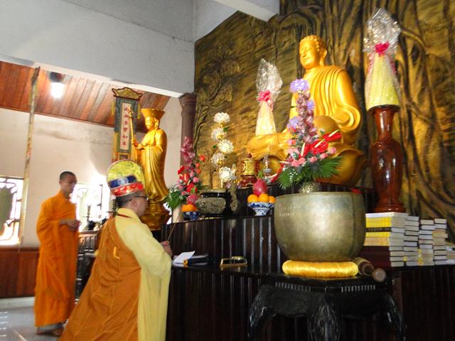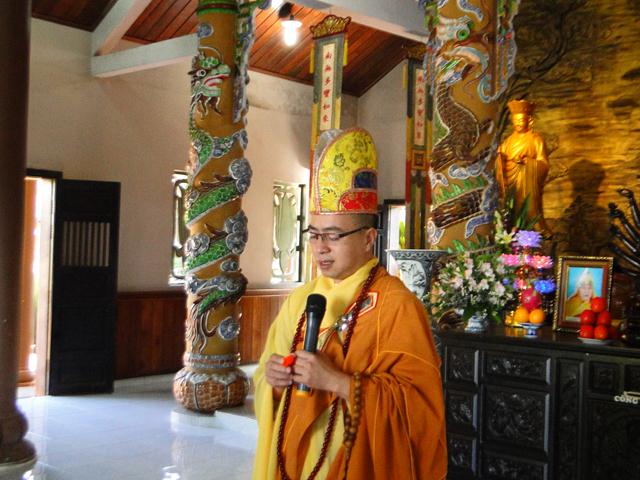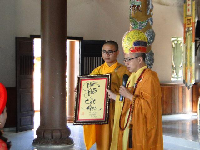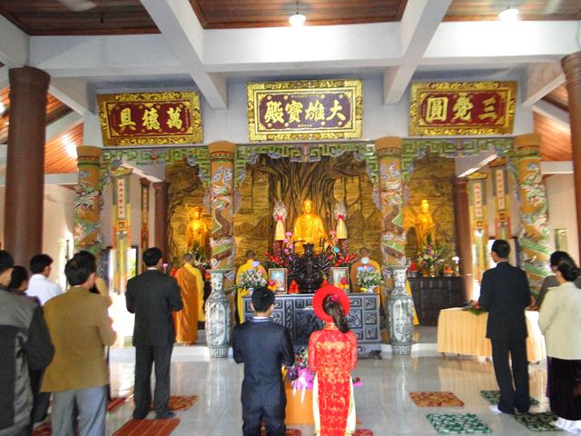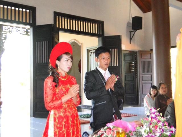 Trước đại hùng bảo điện, thay mặt chư tôn đức, ĐĐ chứng minh đã nêu lên ý của lễ hằng thuận, công ơn sinh thành dưỡng dục của hai bên cha mẹ và đặc biệt là bổn phận, trách nhiệm của nghĩa vợ tình chồng … để đôi bạn trẻ chính thức bước vào ngưỡng cửa cuộc đời, xây dựng một gia đình hạnh phúc, ấm êm , xã hội ngày càng phồn vinh phát triển, xứng đáng là đệ tử của Như Lai, luôn sống an lành trong ánh hào quang của mười phương chư Phật .