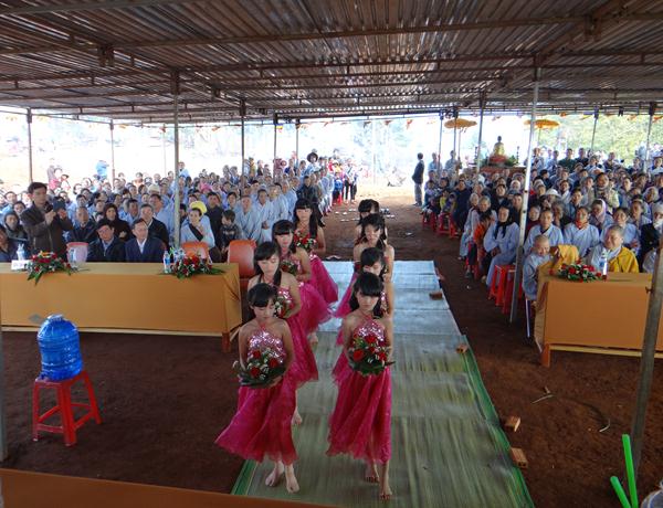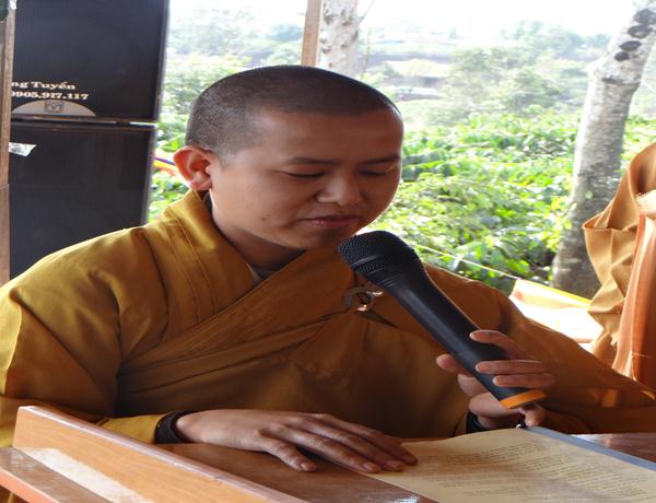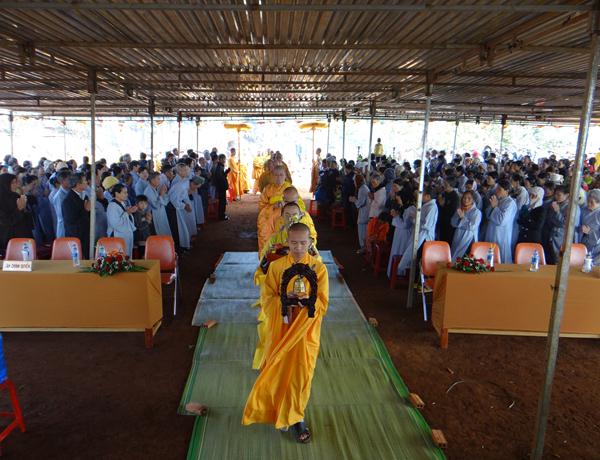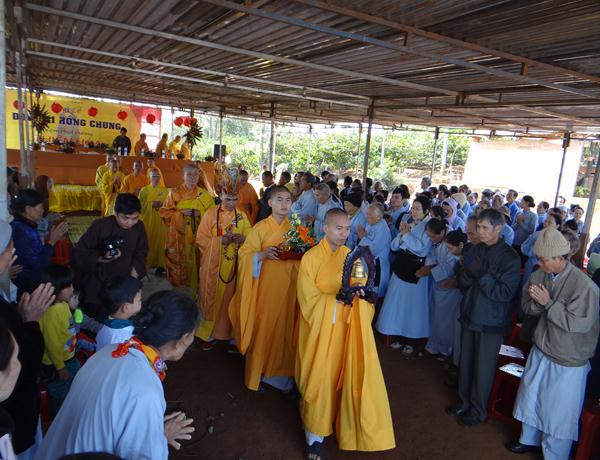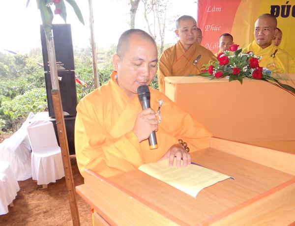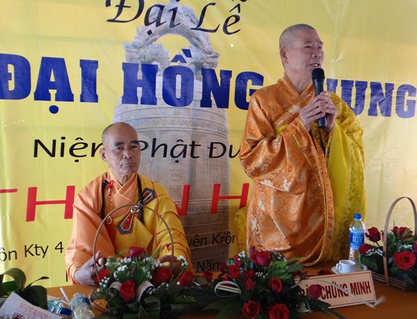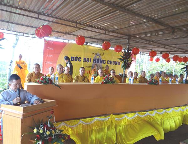 Ban đạo từ, HT. Thích Châu Quang, trưởng BTSPG tỉnh Đắk Lắk tán thán công đức của toàn thể đại chúng đã phát tâm đúc đại hồng chung, đồng thời hòa thượng cũng đã nêu ý nghĩa sâu sa, công dụng vi diệu của việc đúc đại hồng chung, góp phần cầu nguyện cho âm siêu, dương thái …thế giới hòa bình, vạn dân an lạc .