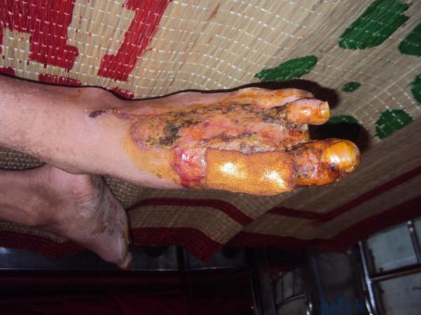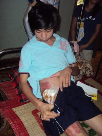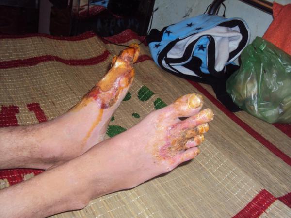 “ Hoạ vô đơn chí , phước bất trùng lai ” tai hoạ lại đổ xuống gia đình tội nghiệp này một lần nữa . Trước tết Nguyên đán Tân Mão có người thuê em đi làm phụ hồ, trong lúc lao động do vô ý em đã đụng phải dòng điện cao thế . Tai nạn đã làm cho hai bàn chân em và một số nơi trên cơ thể bị cháy. Một phần do gia cảnh nghèo thiếu tiền chửa trị, phần không đảm bảo vệ sinh nên vết thương bị nhiểm trùng và đã tháo khớp hai ngón chân.
