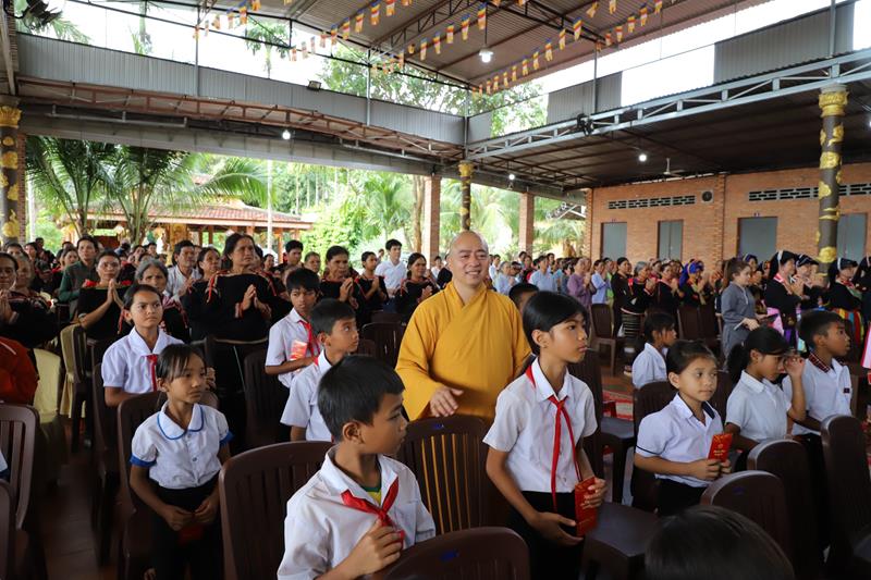 Chư tôn đức trao tặng 43 suất học bổng tiếp theo dự án tiếp bướp Em đến trường của chùa Hoa Nghiêm và trao tặng 5 chiếc xe đạp tới các em học sinh khó khăn tại chùa Hoa Nghiêm huyện Cư M’gar